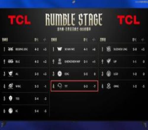 电竞体育1月26报道 今日LPL两场赛事结束后,官方给到了三个组别的积分榜单,TT战队今日不敌WE后已经两负WE和EDG,大场战绩为0胜4负小场1胜8负。