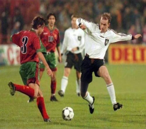 合作了两个赛季,红白艾森彻底绝望,赶紧把他送到了当时还是德乙球队的柏林赫塔。在这里,巴斯勒的暴力美学彻底绽放。他的大力远射,简直就是球队的破门密码,管你什么人墙,一脚下去,球进了,墙倒了。1992—93赛季,一个踢中场的球员,居然刷出了两位数的联赛进球。