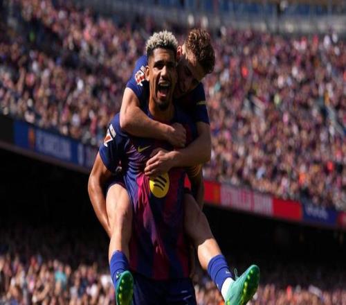 随后经过简单的适应之后,巴塞罗那很快找到进攻感觉,亚马尔边路吸引多人防守,拉菲尼亚数次获得良机,单刀打偏、远射击中横梁!直到第24分钟,坎塞洛角球罚到禁区,阿劳霍如同泰山压顶一般,直接将球顶进球门,1:0!